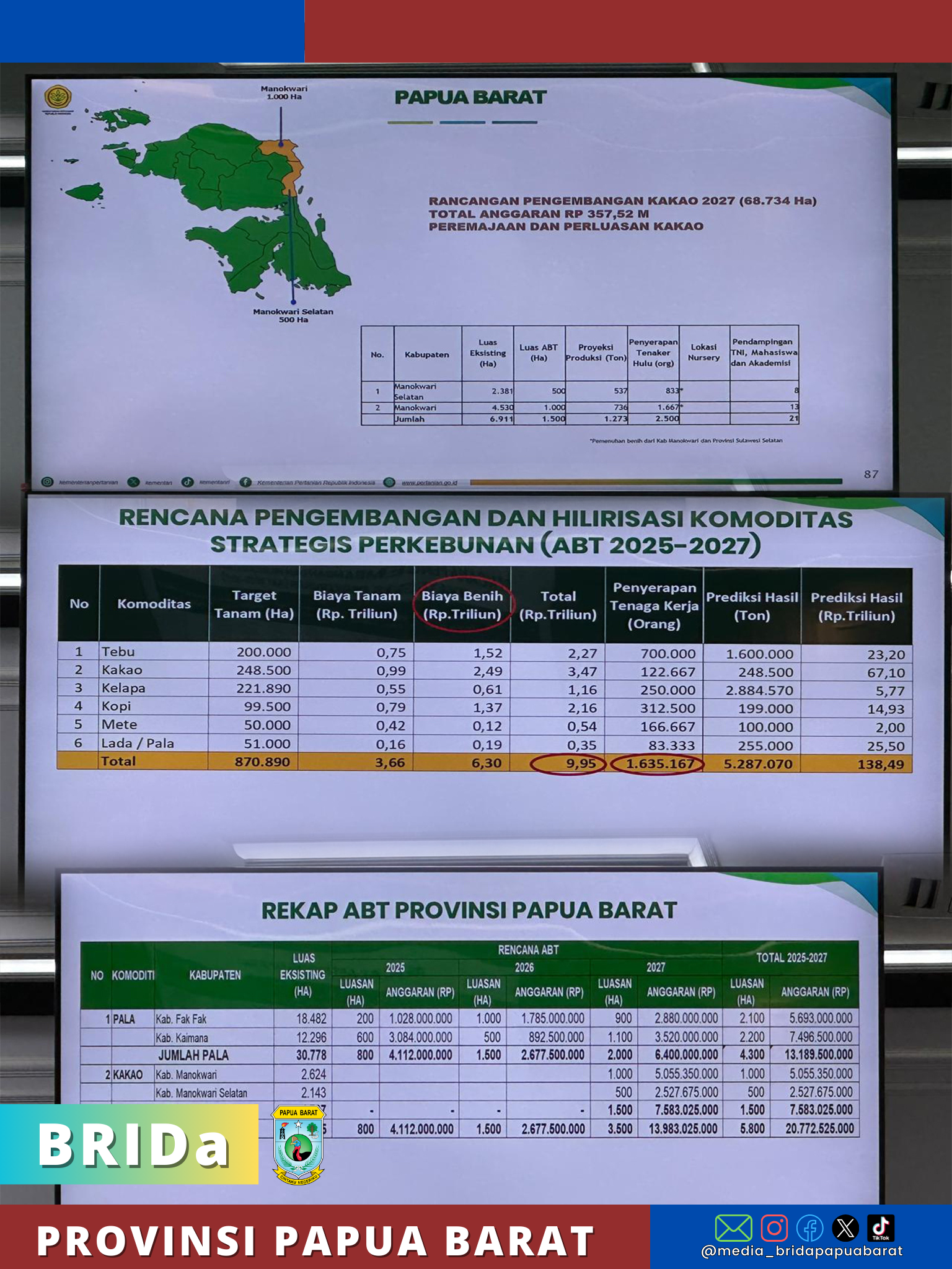 Dalam audiensi tersebut, Gubernur Mandacan memaparkan rencana pengembangan kakao seluas 68.734 hektare hingga 2027 dengan kebutuhan anggaran sekitar Rp357,52 miliar untuk program peremajaan dan perluasan kebun kakao.