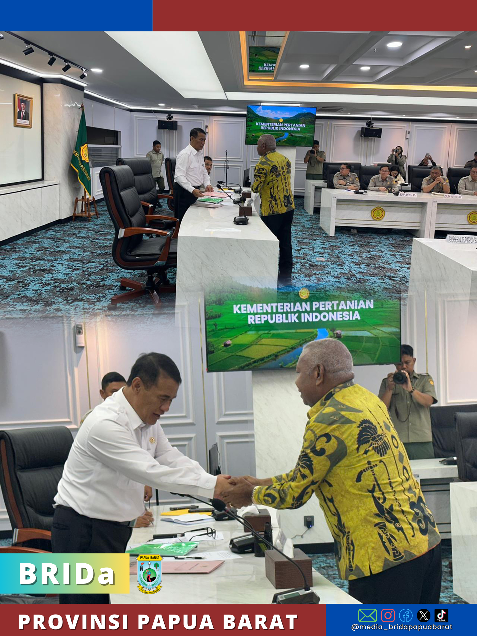 BridaNews_Jakarta, 12 Maret 2026 — Pemerintah Provinsi Papua Barat yang dipimpin Gubernur Papua Barat, Drs. Dominggus Mandacan, M.Si., melakukan audiensi dengan Menteri Pertanian Republik Indonesia, Dr. Ir. H. Andi Amran Sulaiman, M.P., di Jakarta, Kamis (12/3/2026).