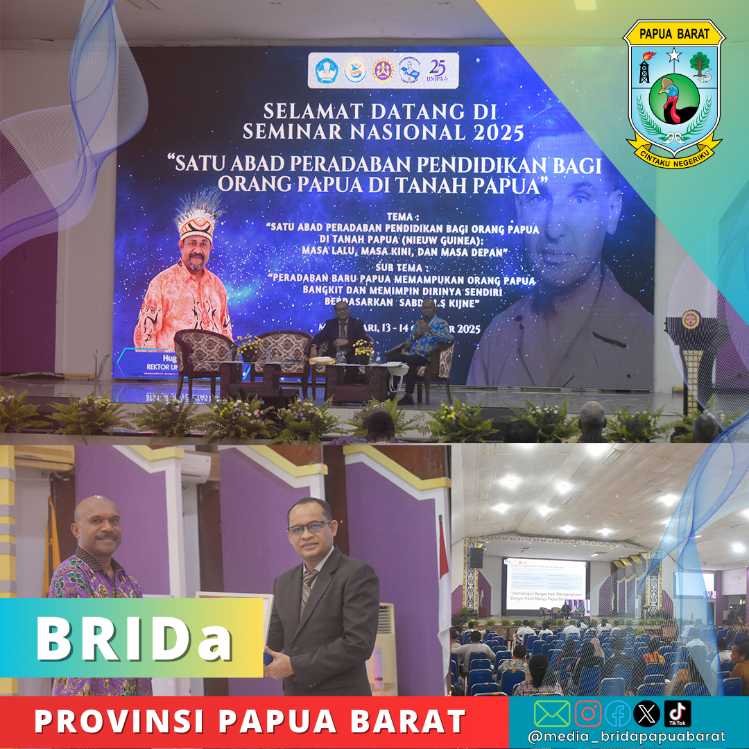 BridaNews_Manokwari – Gubernur Papua Barat Drs. Dominggus Mandacan, M.Si yang diwakili Kepala Badan Riset dan Inovasi Daerah (BRIDA) Provinsi Papua Barat Prof. Dr. Charlie D. Heatubun, S.Hut, M.Si hadir sebagai narasumber dalam acara Seminar Nasional “Satu Abad Peradaban Pendidikan Bagi Orang Papua di Tanah Papua” yang diselenggarakan oleh Universitas Papua yang bertempat di Aula Utama Unipa, Senin 13/10/2025.