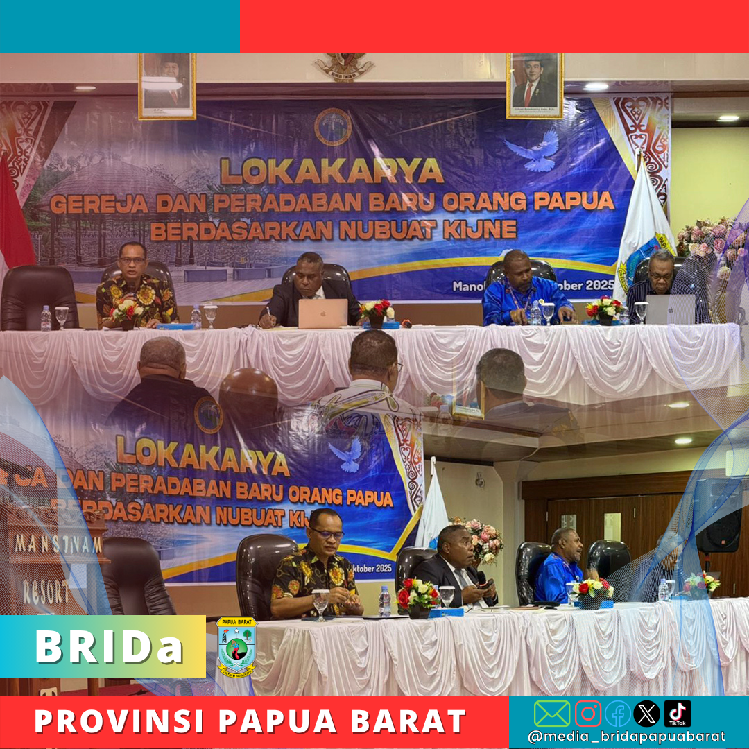 BridaNews_Manokwari – Gubernur Papua Barat Drs. Dominggus Mandacan, M.Si menghadiri Lokakarya: Gereja dan Peradaban Baru Orang Papua Berdasarkan Nubuat Kijne di Mansinam Beach Hotel & Resort pada Kamis (16/10/2025).