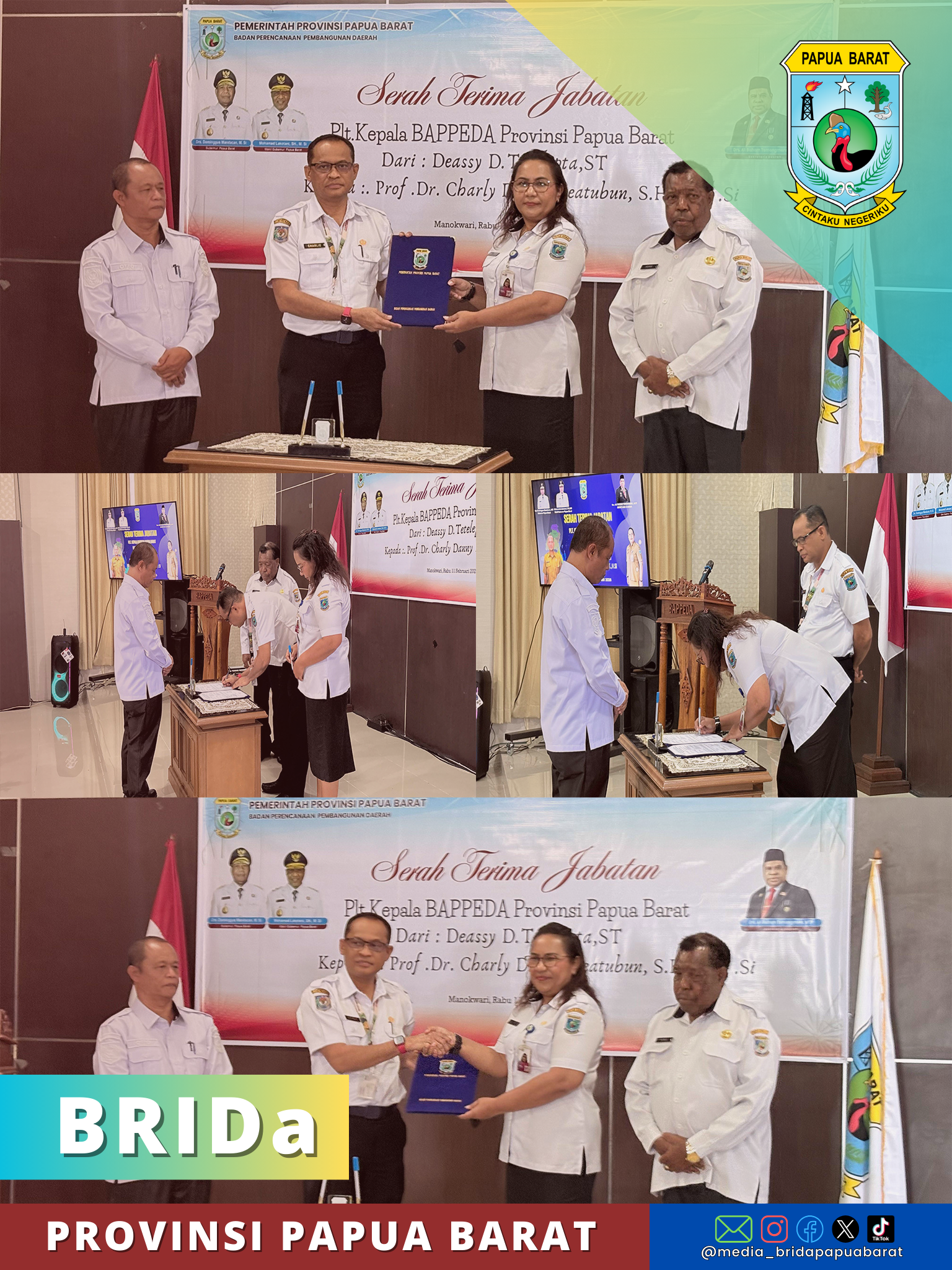 BridaNews_Manokwari, Pemerintah Provinsi Papua Barat melaksanakan serah terima jabatan Pelaksana Tugas (Plt) Kepala Badan Perencanaan dan Pembangunan Daerah (BAPPEDA) Provinsi Papua Barat kepada Prof. Dr. Charlie D. Heatubun, S.Hut, M.Si dalam prosesi resmi yang berlangsung di Aula Kantor BAPPEDA Provinsi Papua Barat. Rabu (11/2/2026)